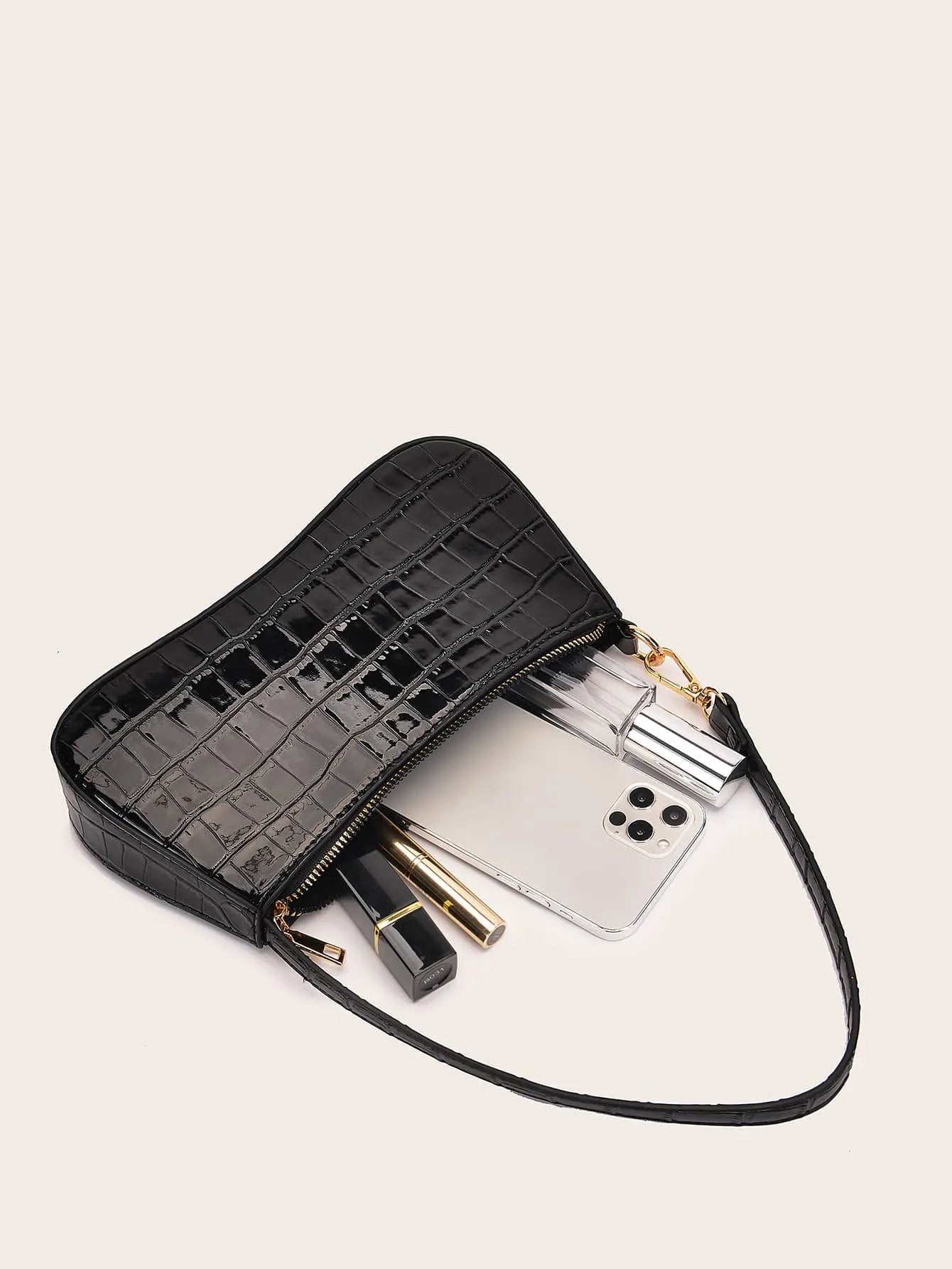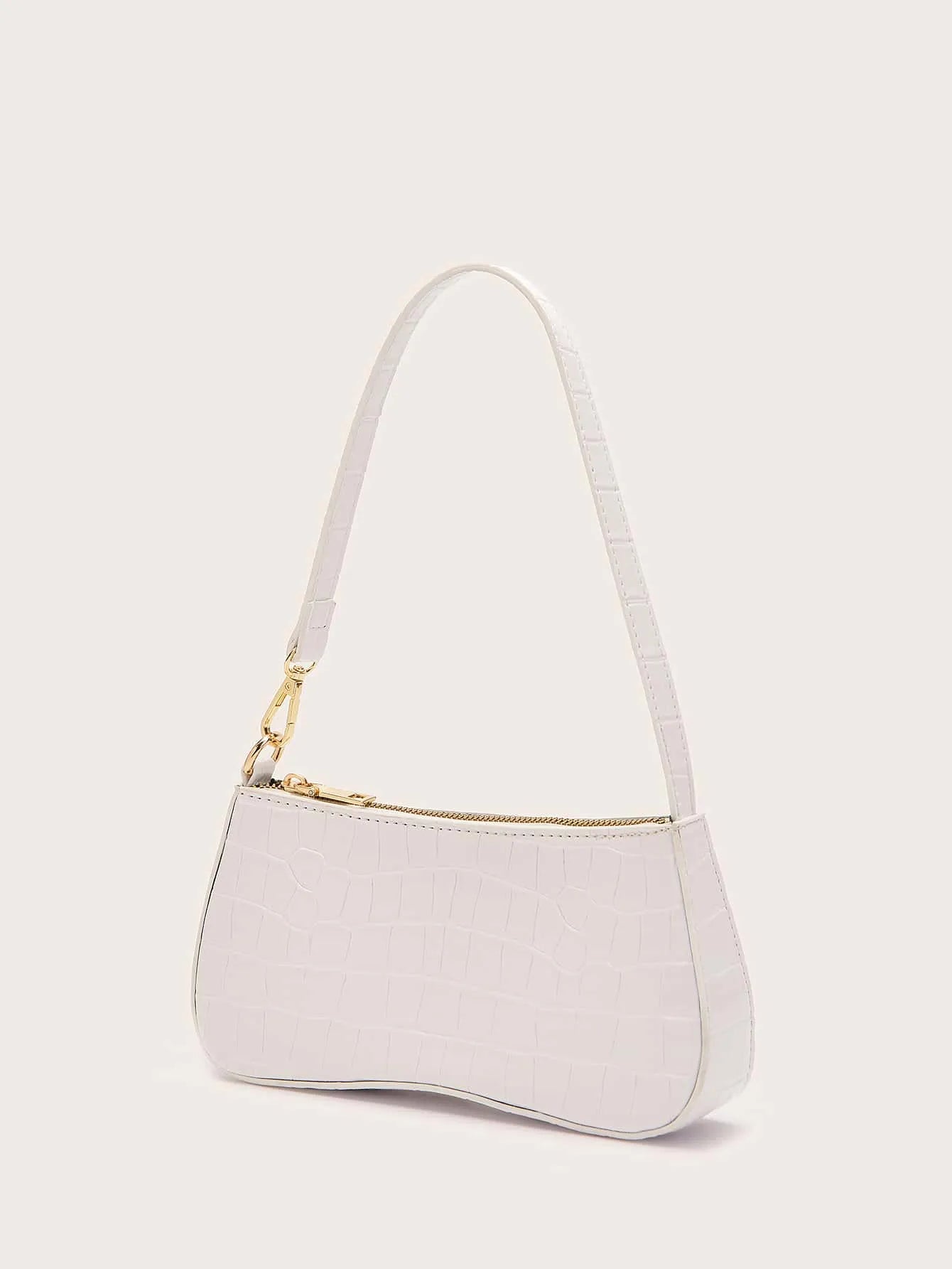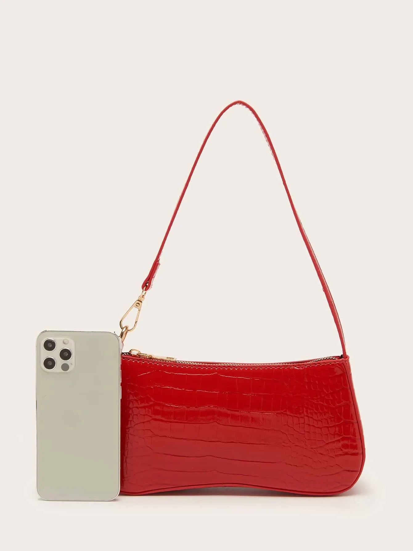 This small baguette bag features a colorful crocodile print crafted from durable PU leather with 100% polyester lining, combining style and functionality. Designed with a top handle and secure zipper closure, it offers easy carrying and keeps your essentials safe. Perfect for adding a funky touch to school events or elevating formal occasions like weddings, proms, and parties. Its compact size complements evening and bridal outfits seamlessly, making it a versatile accessory for fashion-forward women.