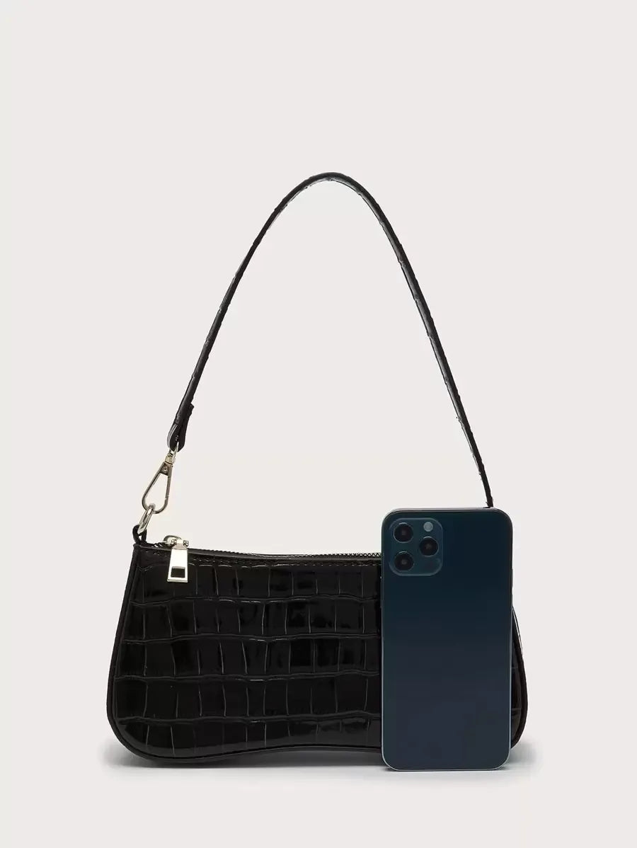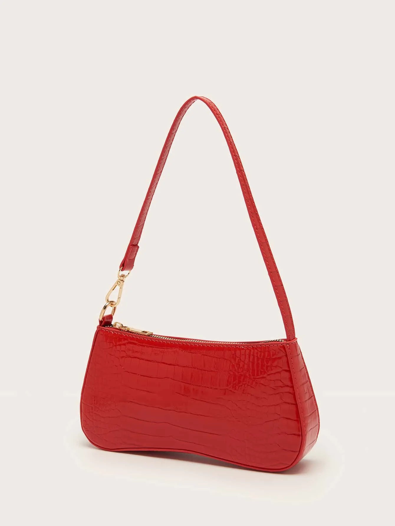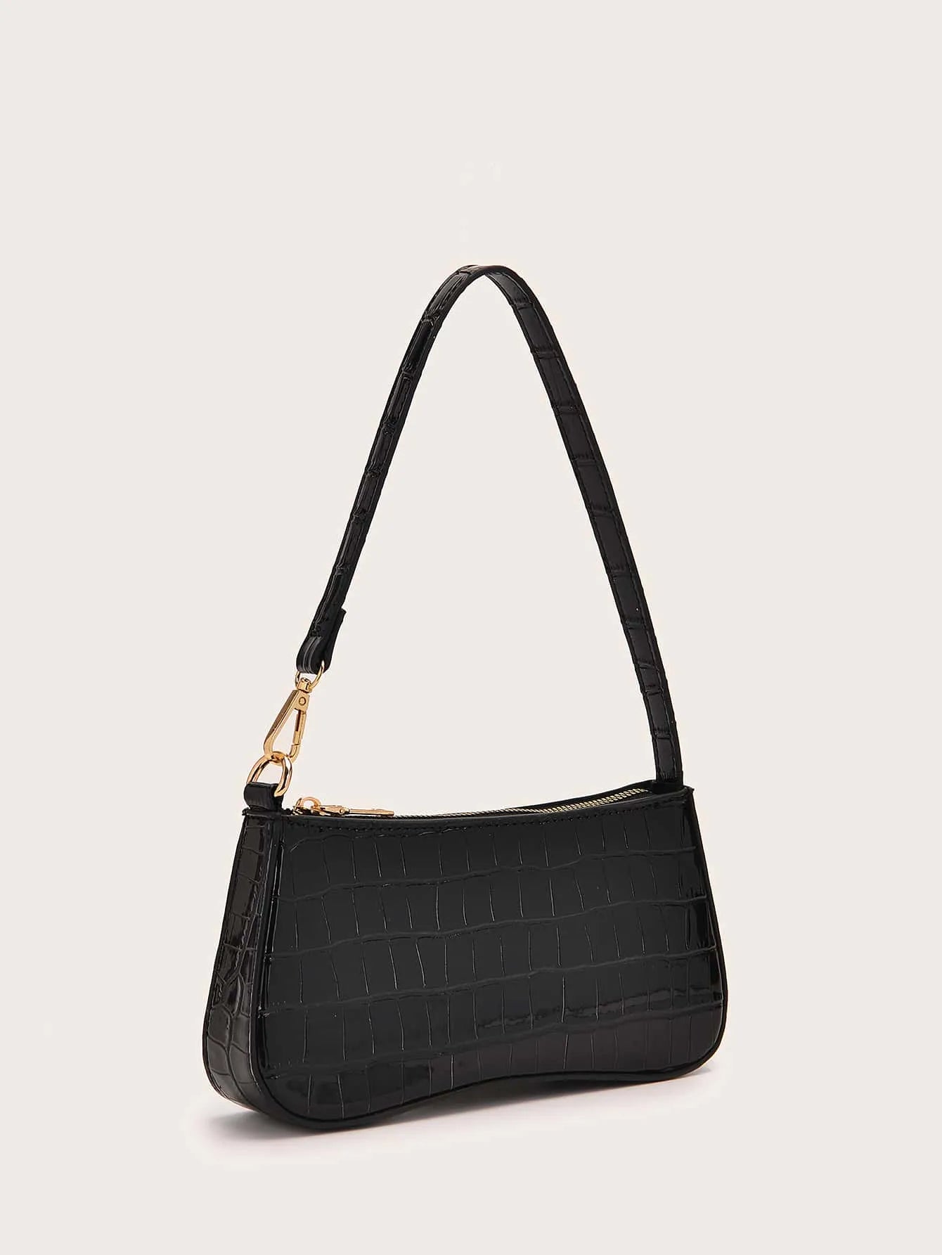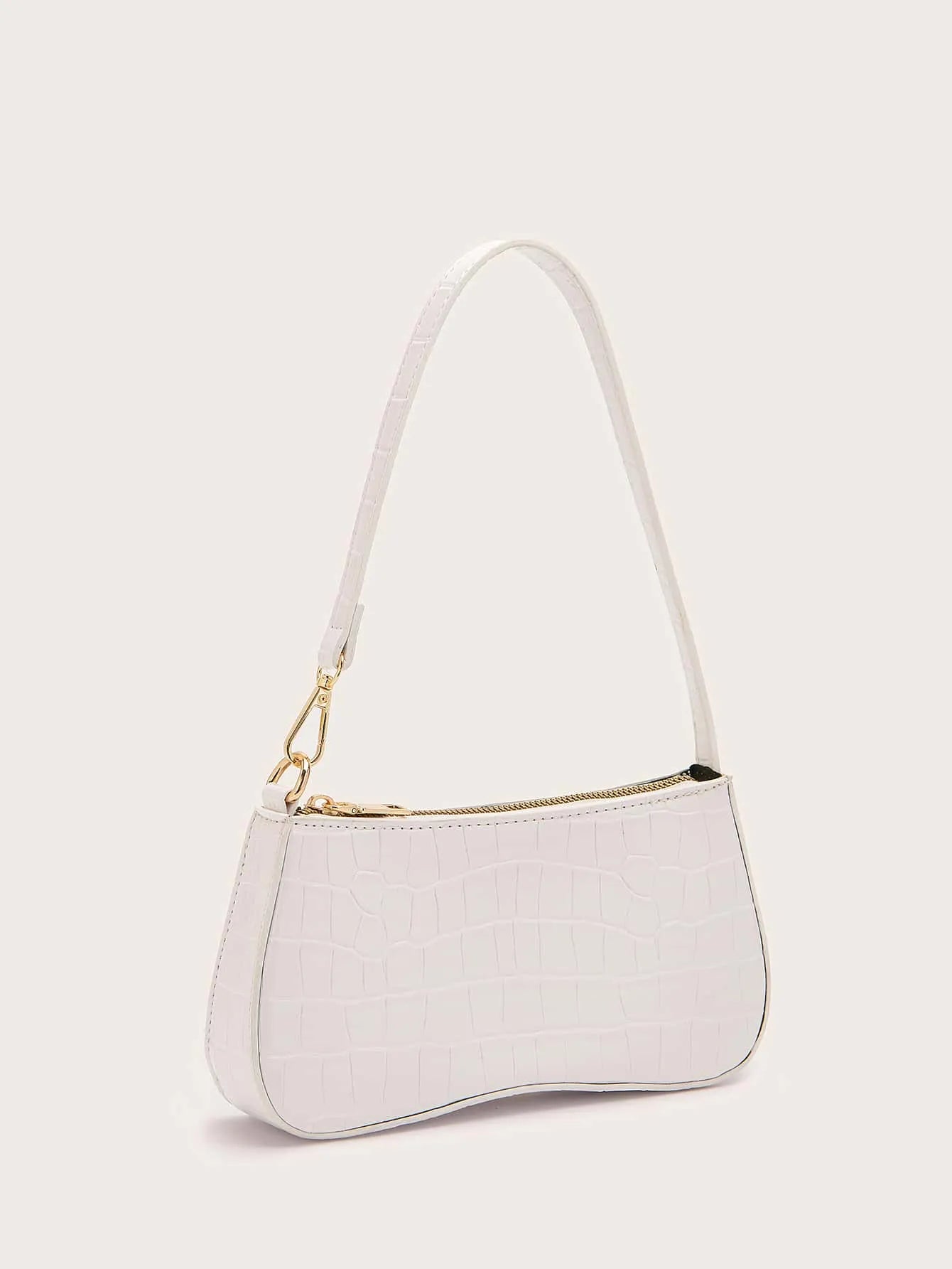 This small baguette bag features a colorful crocodile print crafted from durable PU leather with 100% polyester lining, combining style and functionality. Designed with a top handle and secure zipper closure, it offers easy carrying and keeps your essentials safe. Perfect for adding a funky touch to school events or elevating formal occasions like weddings, proms, and parties. Its compact size complements evening and bridal outfits seamlessly, making it a versatile accessory for fashion-forward women.
