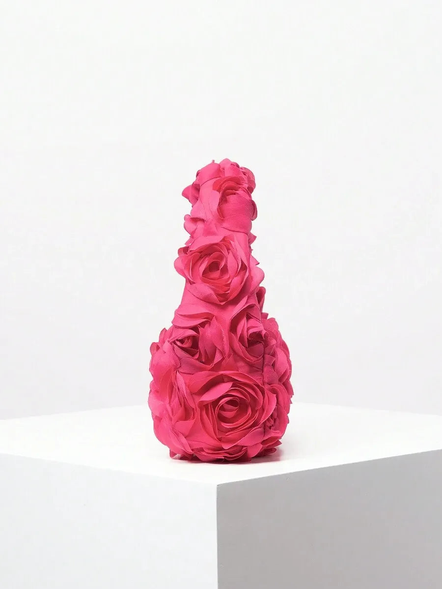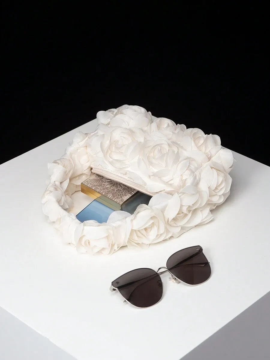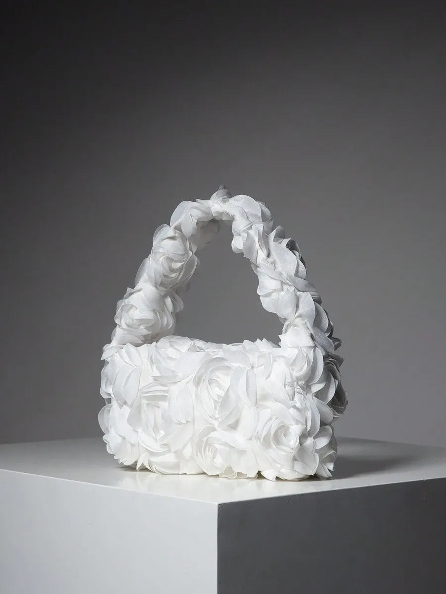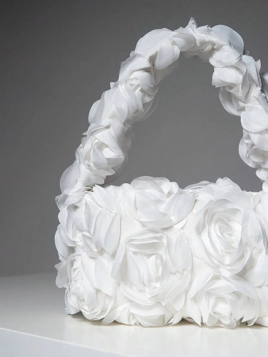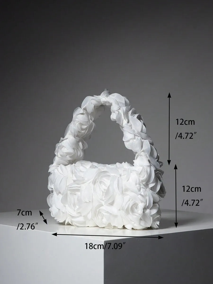 Women's Elegant 3D Rose Flower Tote Bag Evening Party Handbag Wedding Purse Bride Bridesmaid Banquet Birthday Gift Bag Romantic Dress Match