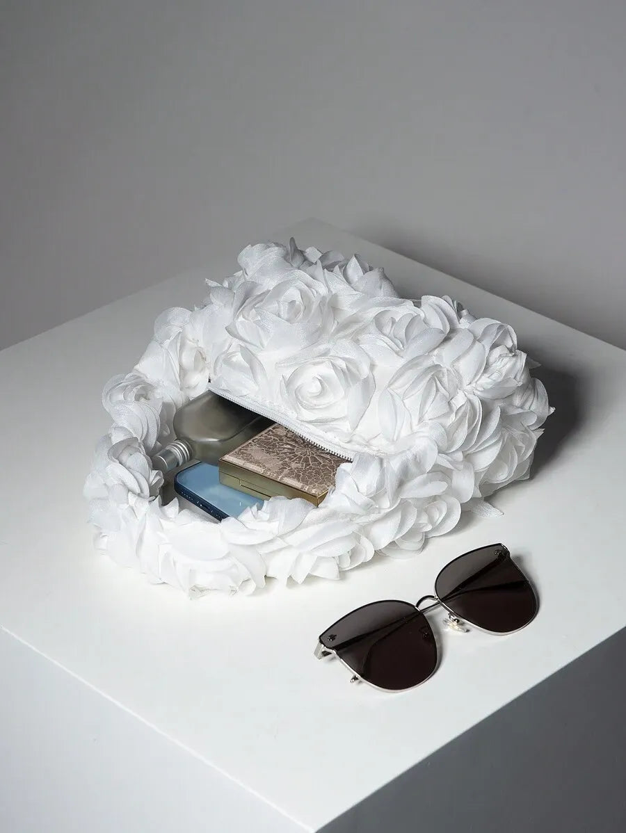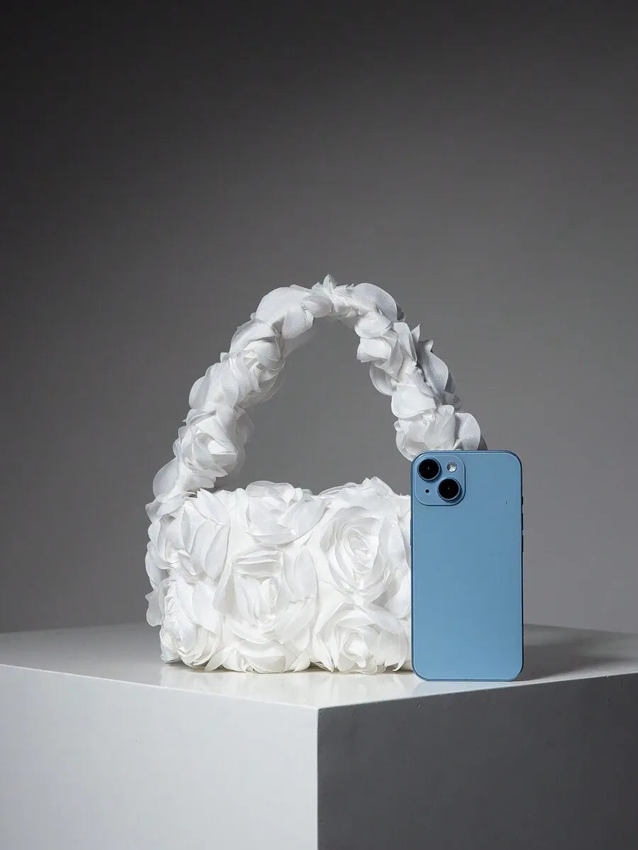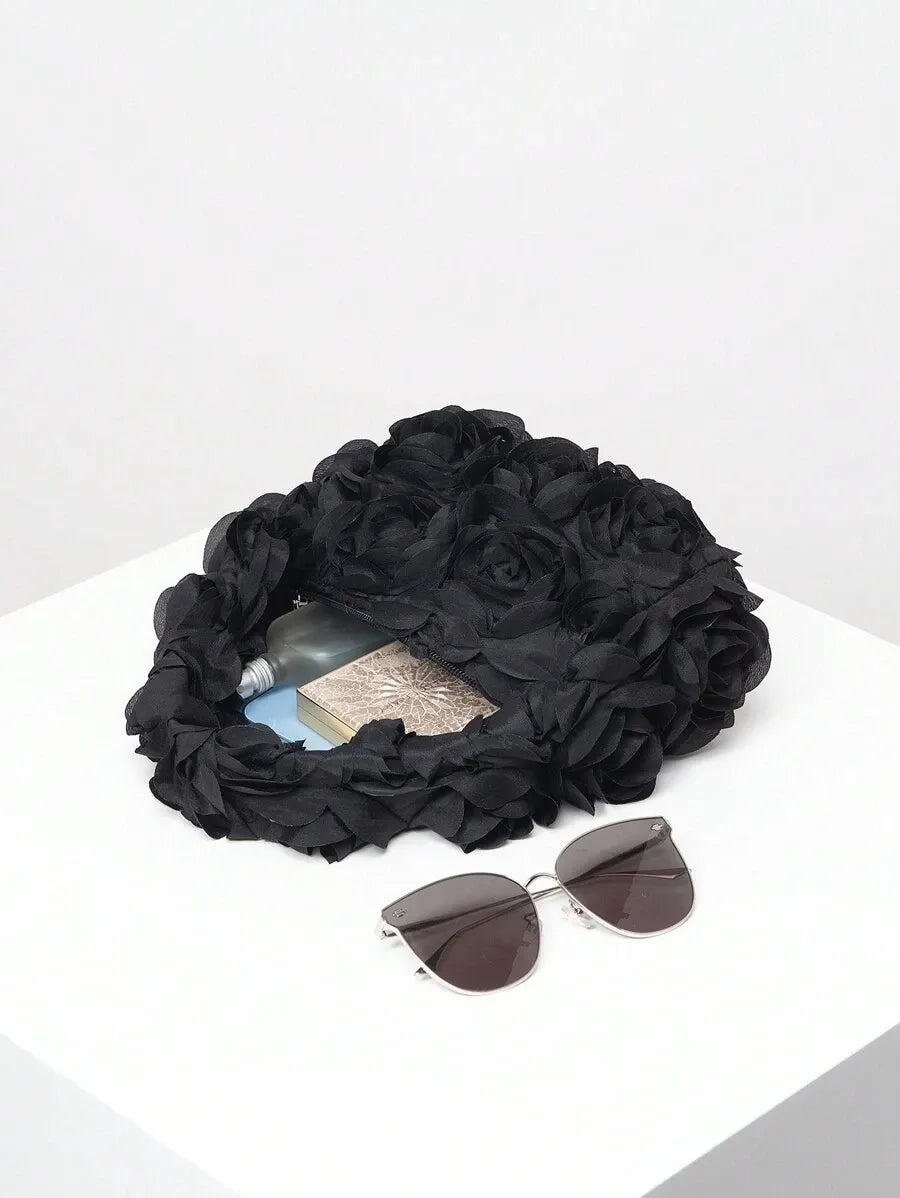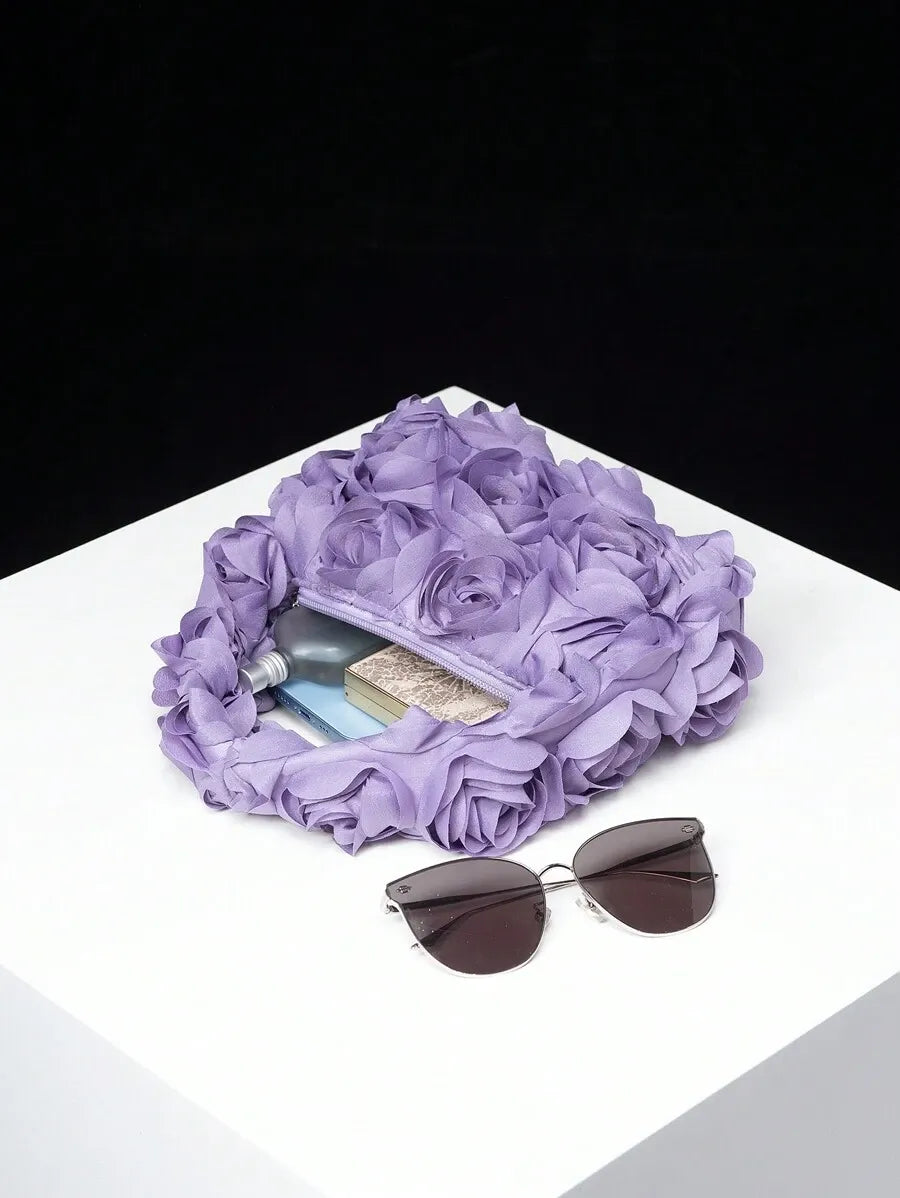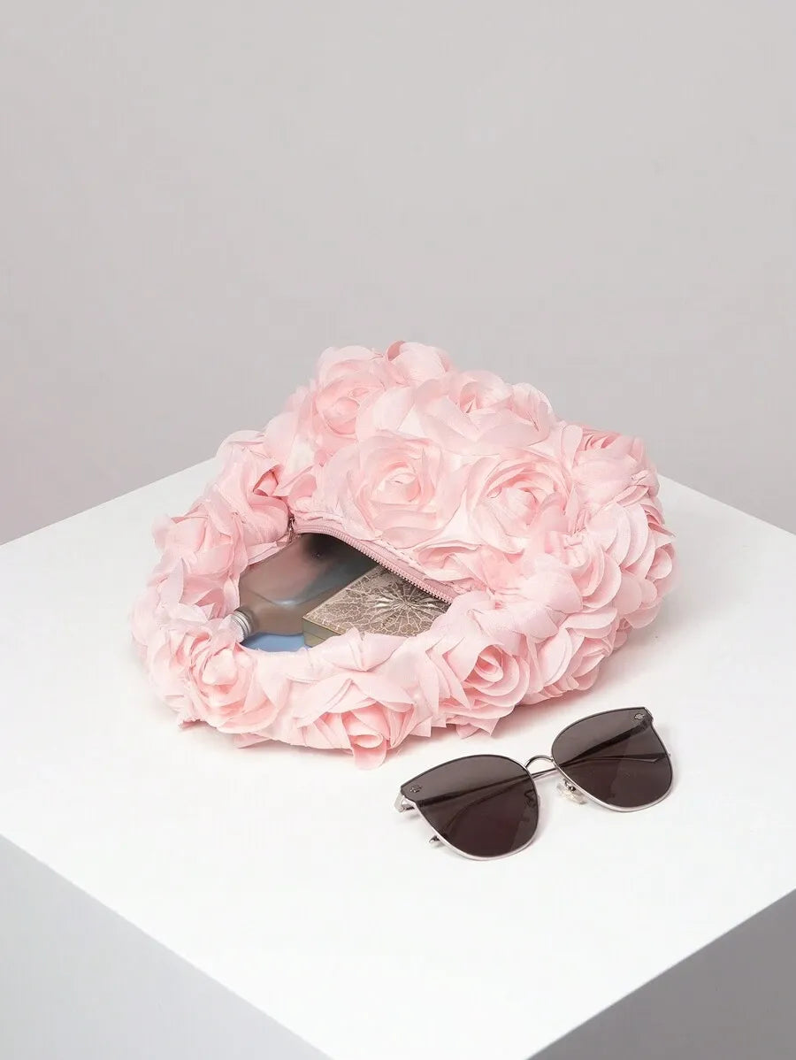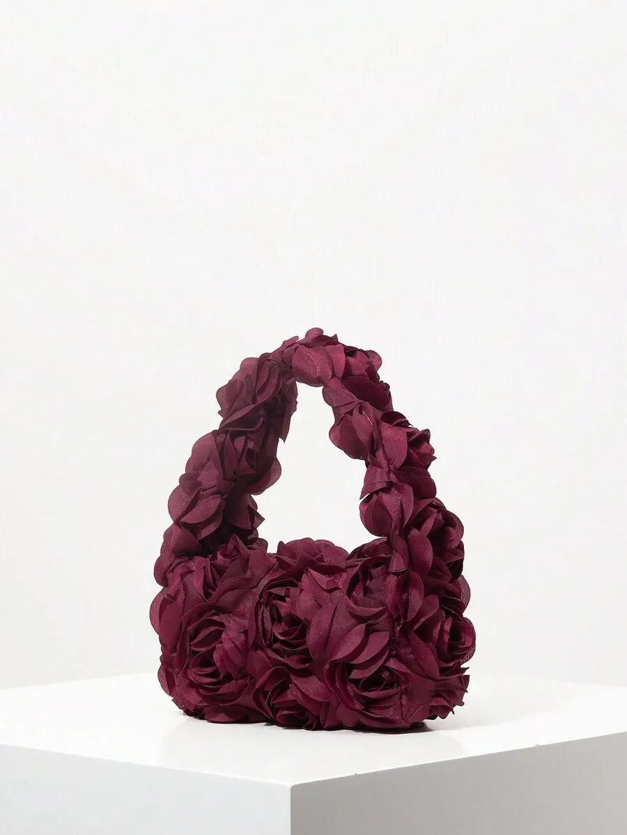 Women's Elegant 3D Rose Flower Tote Bag Evening Party Handbag Wedding Purse Bride Bridesmaid Banquet Birthday Gift Bag Romantic Dress Match