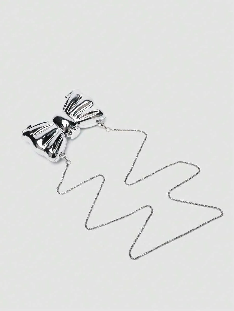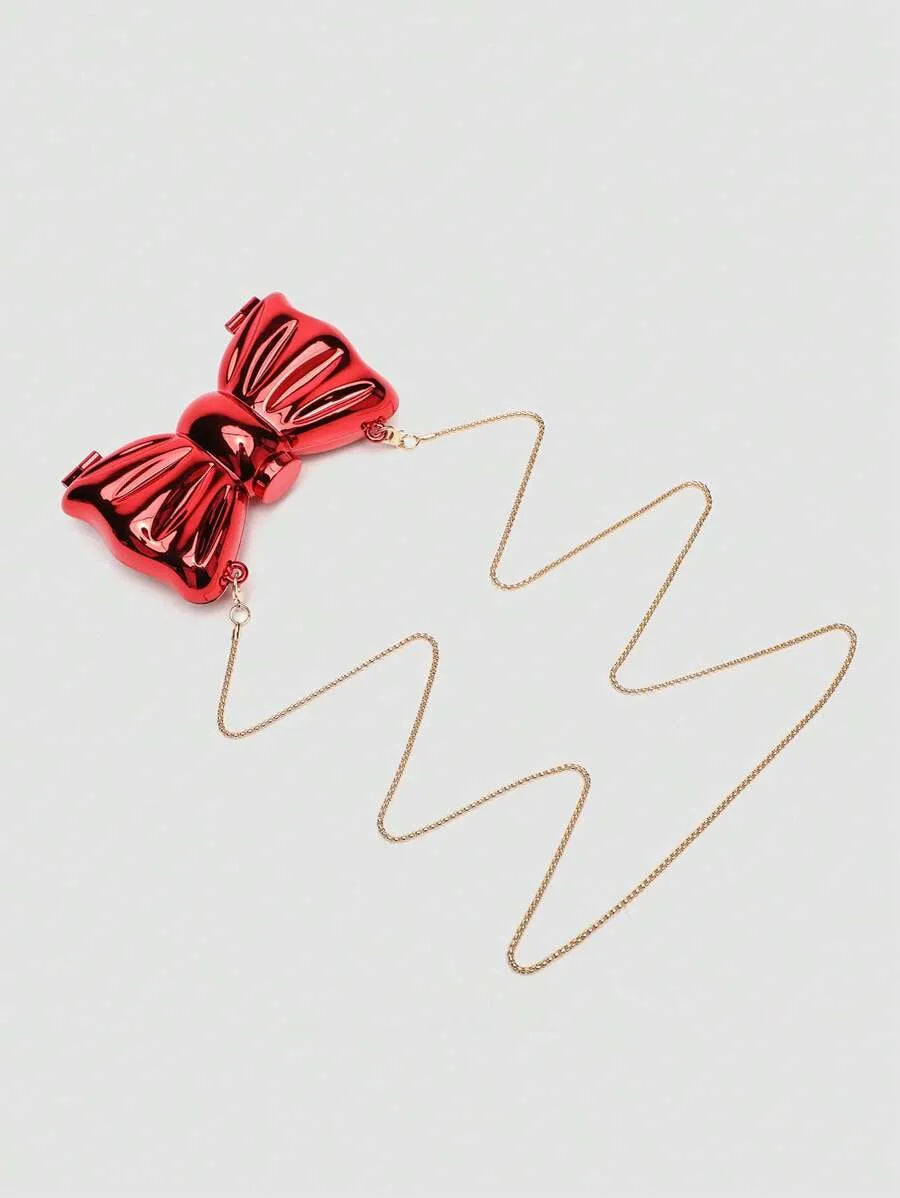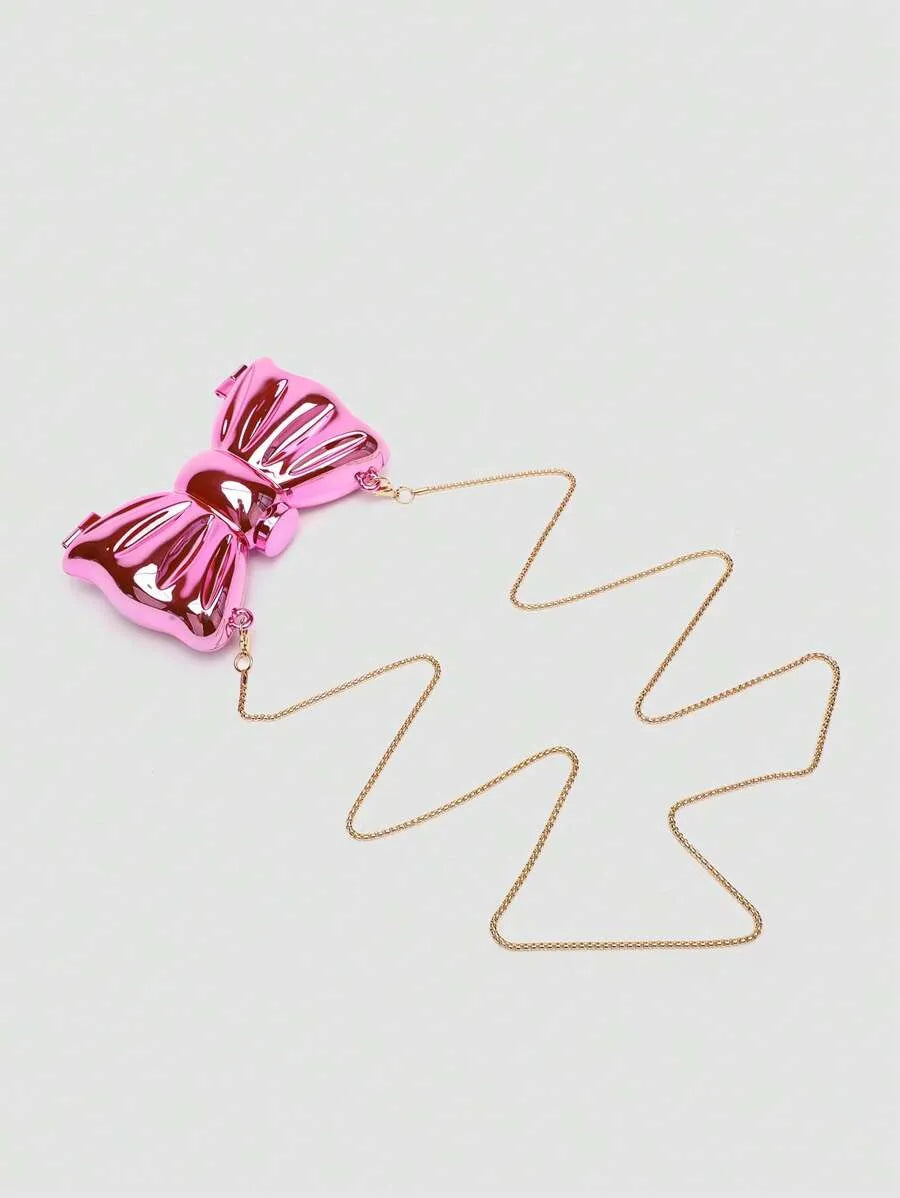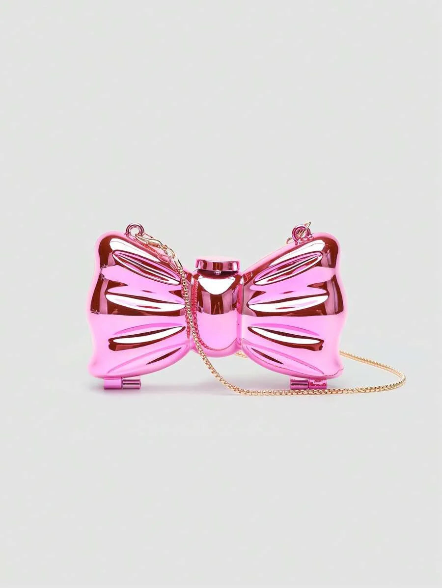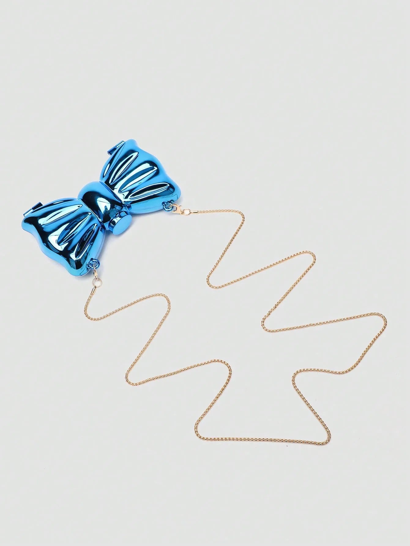 Women's Mini Metallic Acrylic Bowknot Clutch Bag With Chain Multifunction Cosmetic Jewelry Storage Purse Party Wedding Crossbody Coin Bag