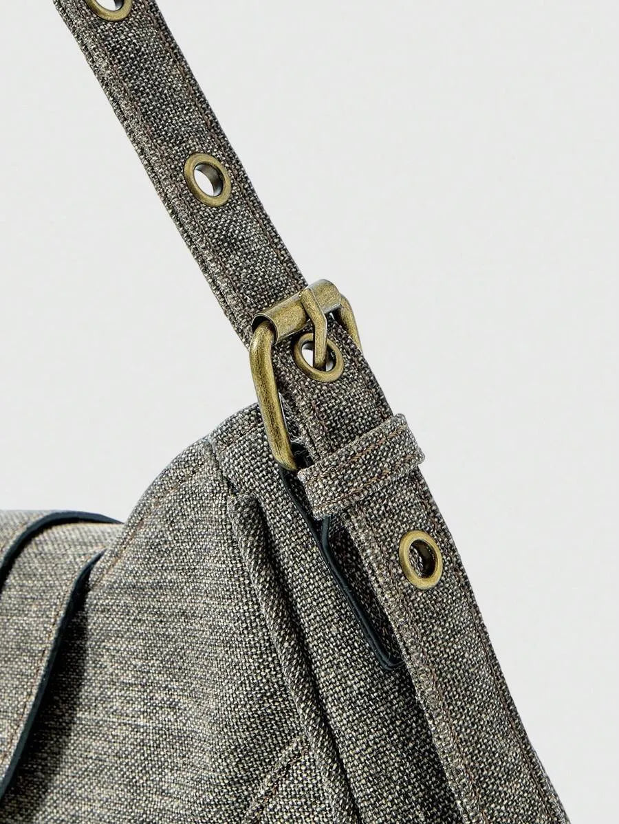 Women's Retro Solid Color Grunge Punk Fashion Handbag Daily Commute Casual Tote Purse Versatile Crossbody Bag Travel Shoulder Bag