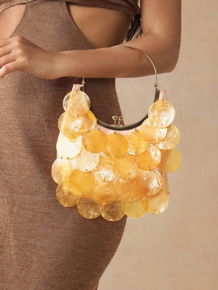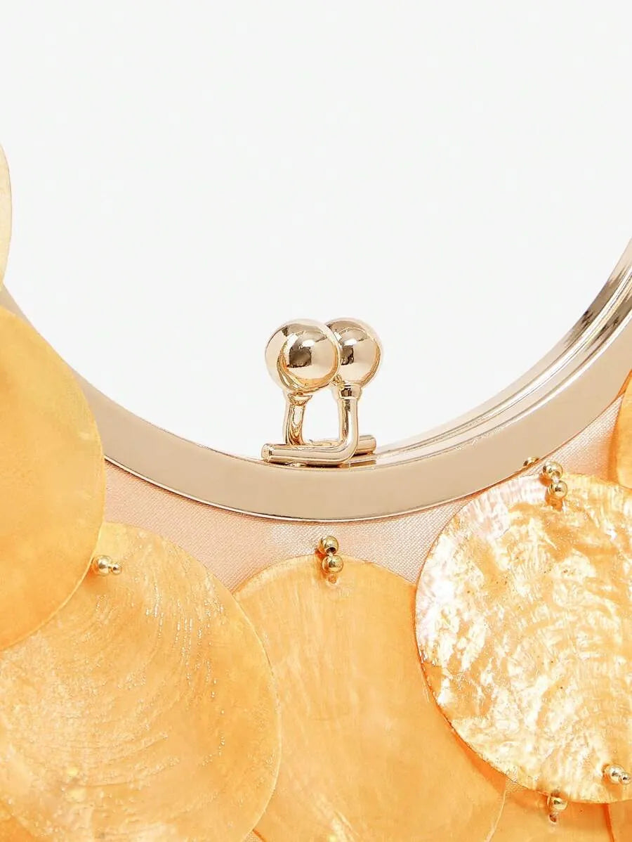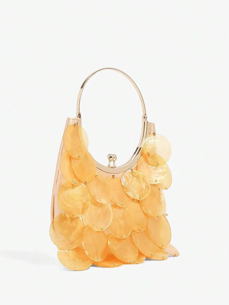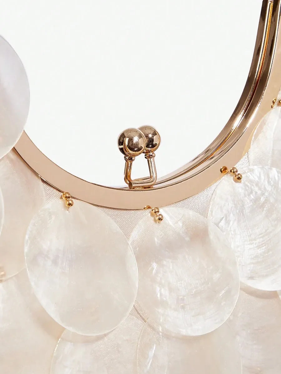 Women's Top Handle Bag With Metal Shell Decor Fashion Elegant Versatile Personalized Shoulder Purse Casual Beach Vacation Holiday Outfit